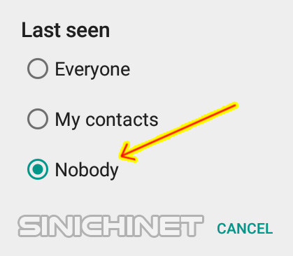 # Last Seen. Pilih opsi Last Seen dan tekan opsi Nobody.